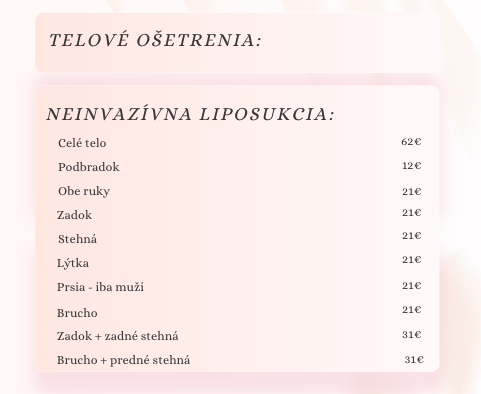 Nová revolučná neinvazívna metóda HLLLT -High Low Level Laser Therapy - zameraná na odstraňovanie nežiadúcich tukových vankúšikov a tvarovania postavy , za použitia nízkoúrovňového lasera.