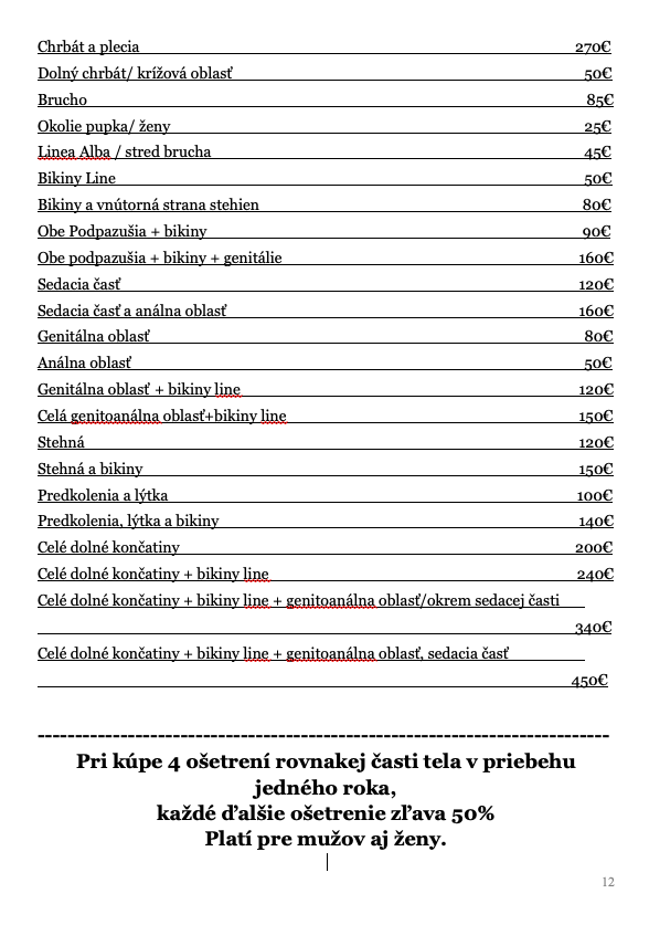 - Nepoužívať horúcu sprchu, saunu ,bazén 24 hodín po procedúre